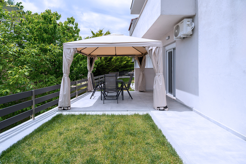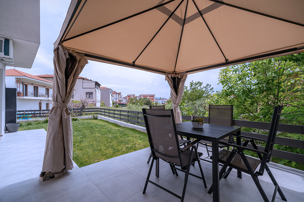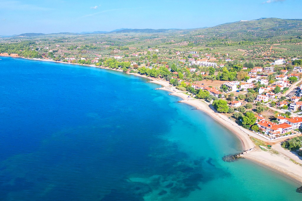 The beach in Nikiti sandy, ideal for relaxing and swimming.